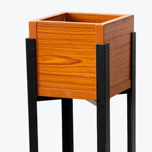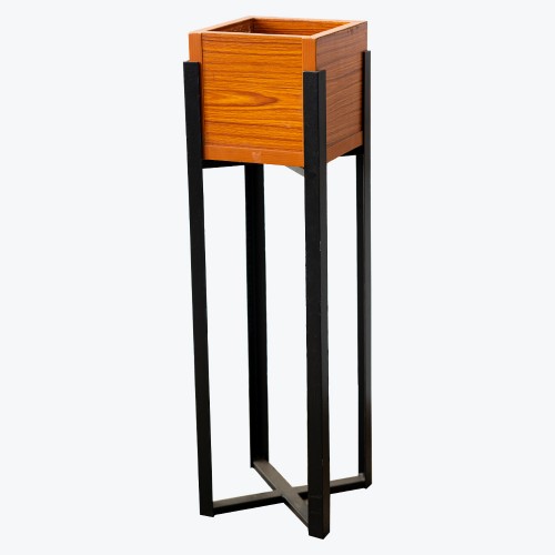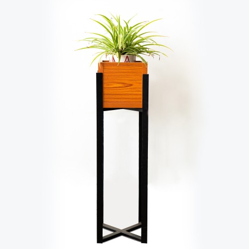 cubical pot stand made of fine crafted wood with natural wood colour mica black sturdy metal powder coated stand