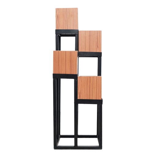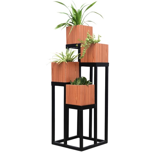 A stylish way to fulfill your love of plants as well as enhancing your interior with this beautiful wooden and metal plant stand. created with laser cut metal technology by excellent craftsmen in black color stand and brown wood.