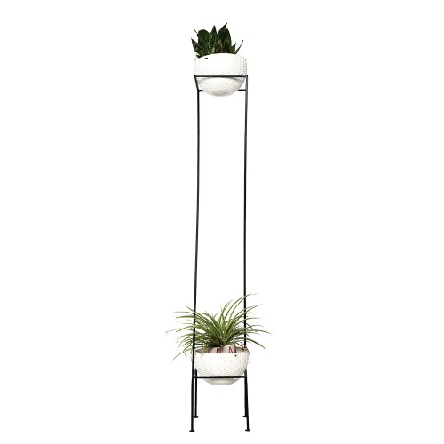 This distinct vertical two level square shaped plant stand is what you need for your interior to be complete and eye catching. Its the perfect gift for your loved ones and will not dissappoint anyone with its distinct and alluring style . created with laser cut metal technology in black color.