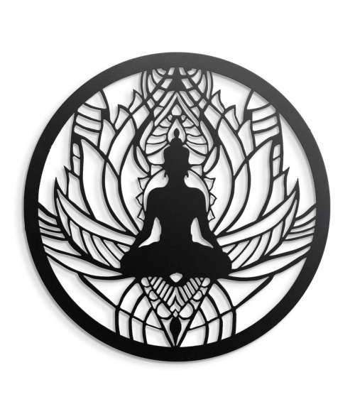 Bring a little peace and zen to your home with this beautiful wall art of a buddha in meditation. The serene lotus design in the background is the perfect backdrop for this peaceful image, and the high-quality of wall art will make it look great on your walls