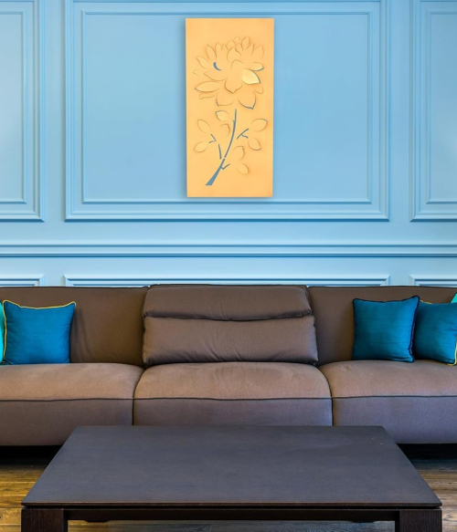 METSY Metal Flower Wall Art Golden in Rectangular Shape for Home/Bedroom/Office/Hallways etc | Metal Wall Art | Wall Decor Items