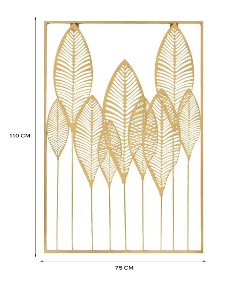 METSY Metal Leaf Long Panel Wall Decor Art Golden in Rectangular Shape for Home & Office/Bedroom/Office/Hallways etc | Metal Wall Art | Wall Decor Items