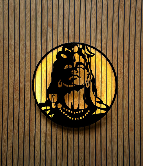 Bring home divine elegance with this beautifully designed Lord Shiva LED Wall Decor Light. Crafted with precision-cut metal and illuminated with warm LED backlighting, this masterpiece radiates peace and spirituality while enhancing the beauty of your interiors. Ideal for pooja rooms, living spaces, meditation corners, or as a thoughtful spiritual gift, this wall light combines modern artistry with traditional devotion.