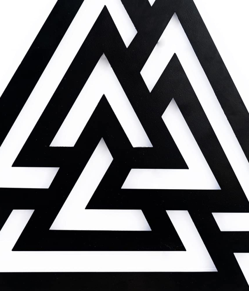 "Beautifully and finely crafted for you all black laser cut metal Valknut Symbol to adorn your walls. Something unique to decorate your empty wide walls with symmetrical triangular shape, which associates with Greek Mythology. "