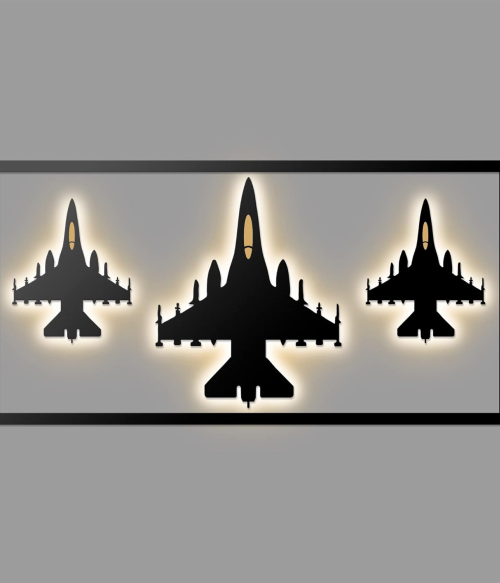 METSYMETSY Metal Laser Cut Wall Hanging with LED Strip Lighting(Bomb white Shade)(4x2) feet (Fighter Jet)