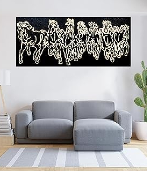METSY Home Decor Seven Running Horses Metal Wall Art | Wall Hanging Wall Decor for Home | Seven Running Horses Frames for Wall Modern Art |