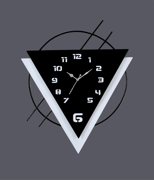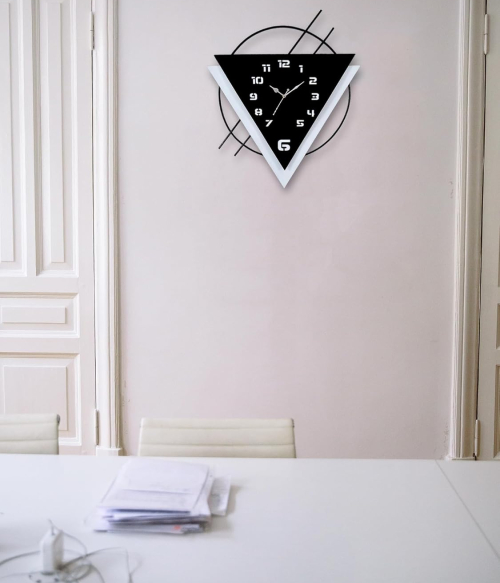 METSY Metal Laser Cut Numerical Analogue Triangle Wall Clock, Wall Decor Watch for Home Office Decor and Gifts | Wall Clock for Home Hall Living Bedroom | Decorative Wall (Black Roman).