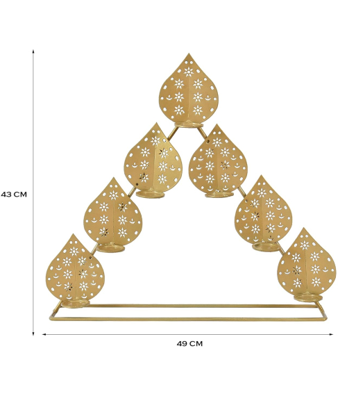 METSY Stylish Metal Cutting Edge Candle Light Holder Leaf in Rectangular Shape | Metal Art | Home Decor Items (Golden Triangular)