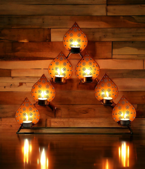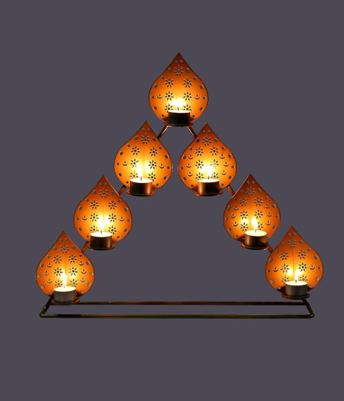METSY Stylish Metal Cutting Edge Candle Light Holder Leaf in Rectangular Shape | Metal Art | Home Decor Items (Golden Triangular) (Golden Triangular)