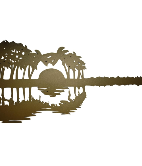 Wall Hanging Decor Abstract Guitar Sunset With Palm trees For Home Decoration with backlit (90cmx 38cm x1.2mm)