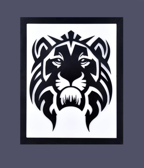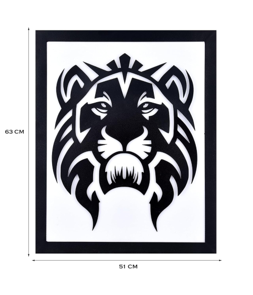 Metsy Stunning Wall Decor, Graphical Lion Face Art Black Powder Coated Finish - Perfect for Living Room, Kid's Room, Bedroom, Hallway (Bomb White Shade) | Wall Decor Items