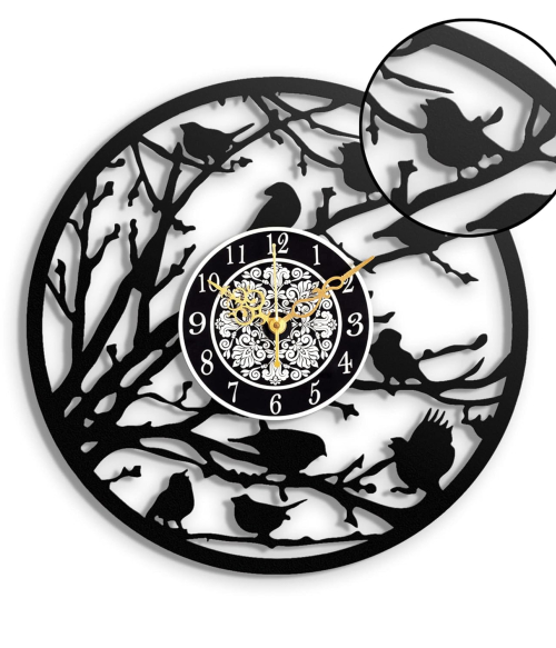METSYWall Clock Birds Design,(Size: 44.5x44.5 cm),Precise Laser Cutting & Black Powder Coated Standard