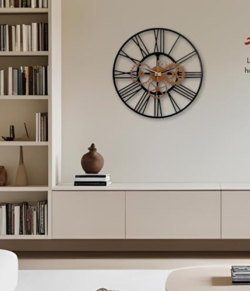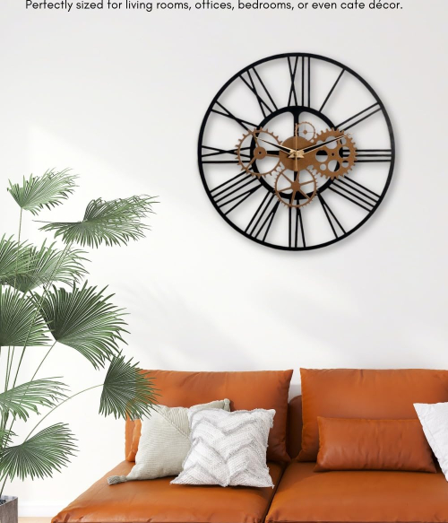 METSY Designer Gear Wall Clock Metal Wall Art Clock Decor for Living Room | Metal Art | Wall Hangings for Home Decoration| 44.5x44.5cm | Precise Laser Cutting & Black Powder Coated