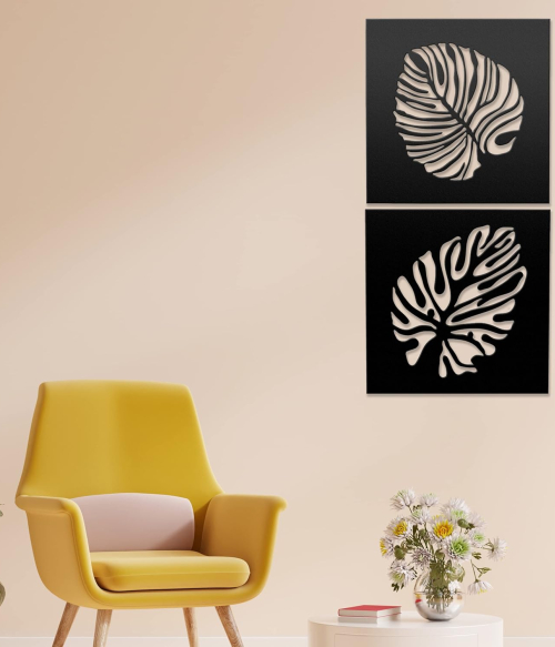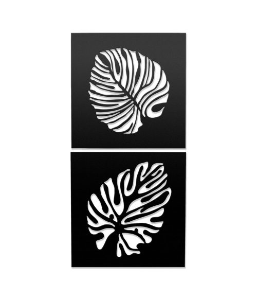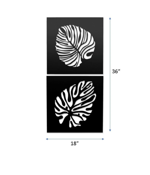METSY Wall Hanging of Monstera Leaves(Set of 2) Made of 1.2mm Metal Sheet, Crafted with Laser Cutting, Black Powder Coated.