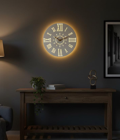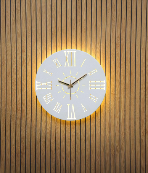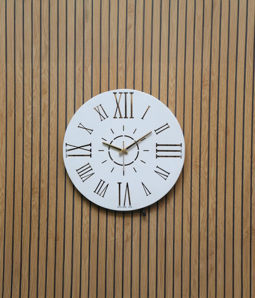 METSY Metal Laser Cut Numerical Analogue Art WallClock White for Home and Office | Metal Wall Art | Wall Decor Items (Analogue Round Wall Clock)