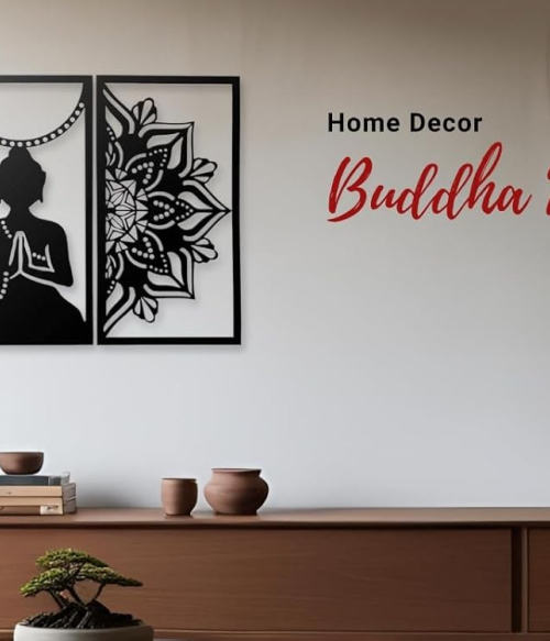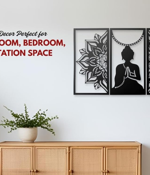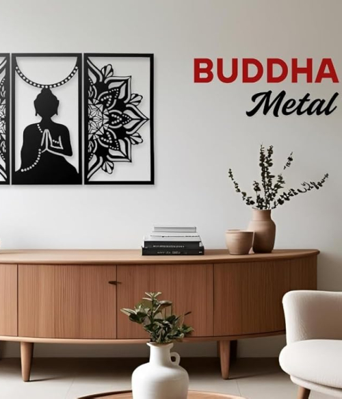 METSY Metal Wall Sculptures | Hanging Decor Wall Arts for Bed Room, Living Room & Office | Meditation Buddha for Wall Hanging | Modern Decorative Art Accessories (Size - H 91 * W 65)
